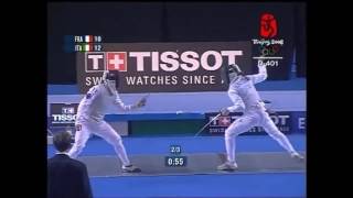 Eppure, talvolta, lo spettatore assiste a confronti di diversa natura, scontri in cui, pur permanendo il desiderio di prevaricare l’antagonista, si afferma il lato artistico della tecnica schermistica, cioè quando lo schermitore non si accontenta solo di far accendere la segnalazione del proprio colpo vincente, ma ricerca e cura il modo in cui il fraseggio lo porta a toccare l’avversario. In altri termini fa spettacolo, esaltando la parte artistica della nostra disciplina. Abbiamo scelto per voi alcuni video che vanno in questa direzione, anche se indubbiamente è difficile mantenere la tensione artistica sempre al massimo per tutto l’incontro del match